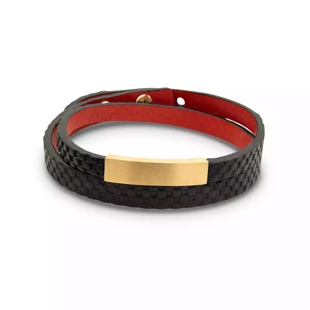 - سوار من الجلد والذهب مع لوحة مسطحة