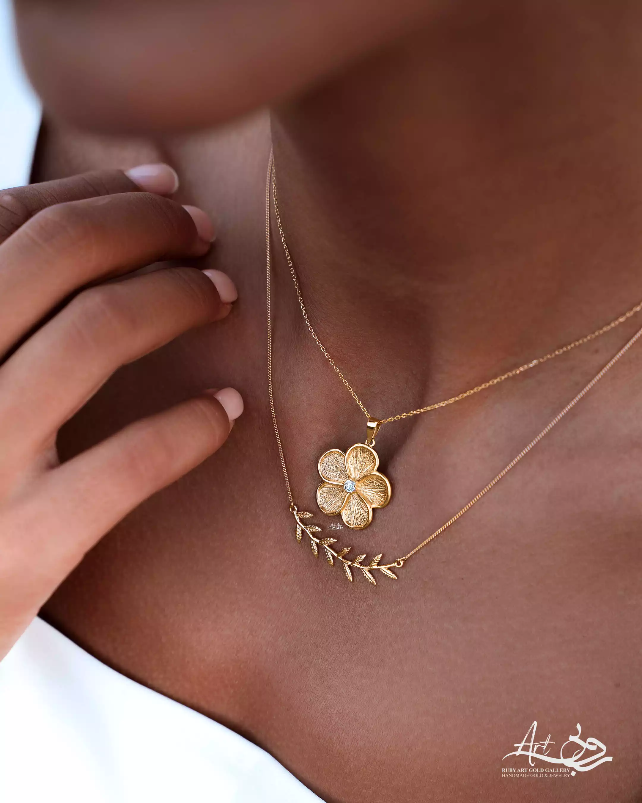 - قلادة ذهبية على شكل خمس أوراق برسيم
