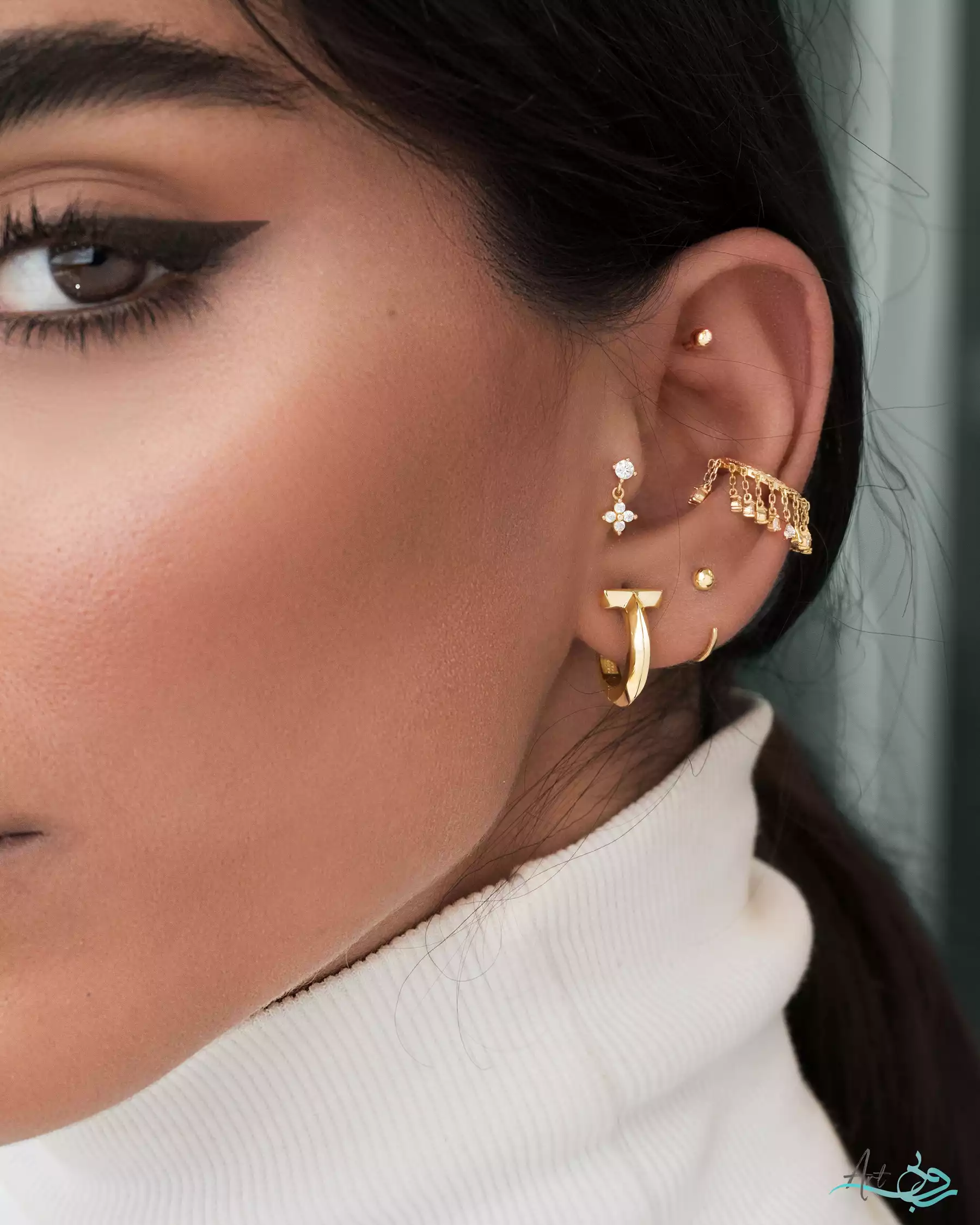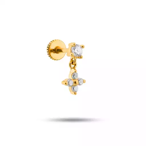 ثقب جوهرة واحدة وقلادة ذهبية مع جوهرة