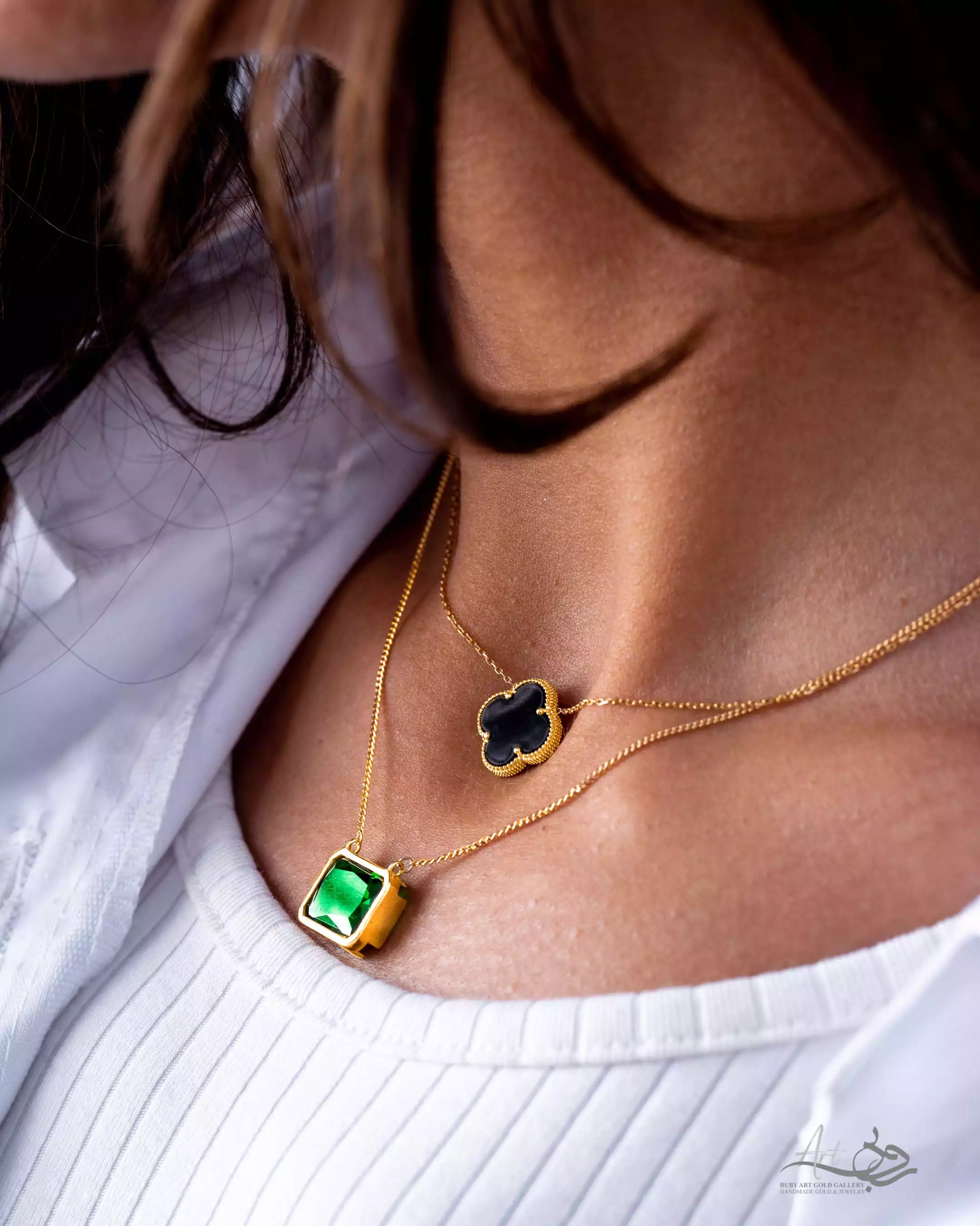 - قلادة فانكليف غوارس من الذهب والعقيق الأسود